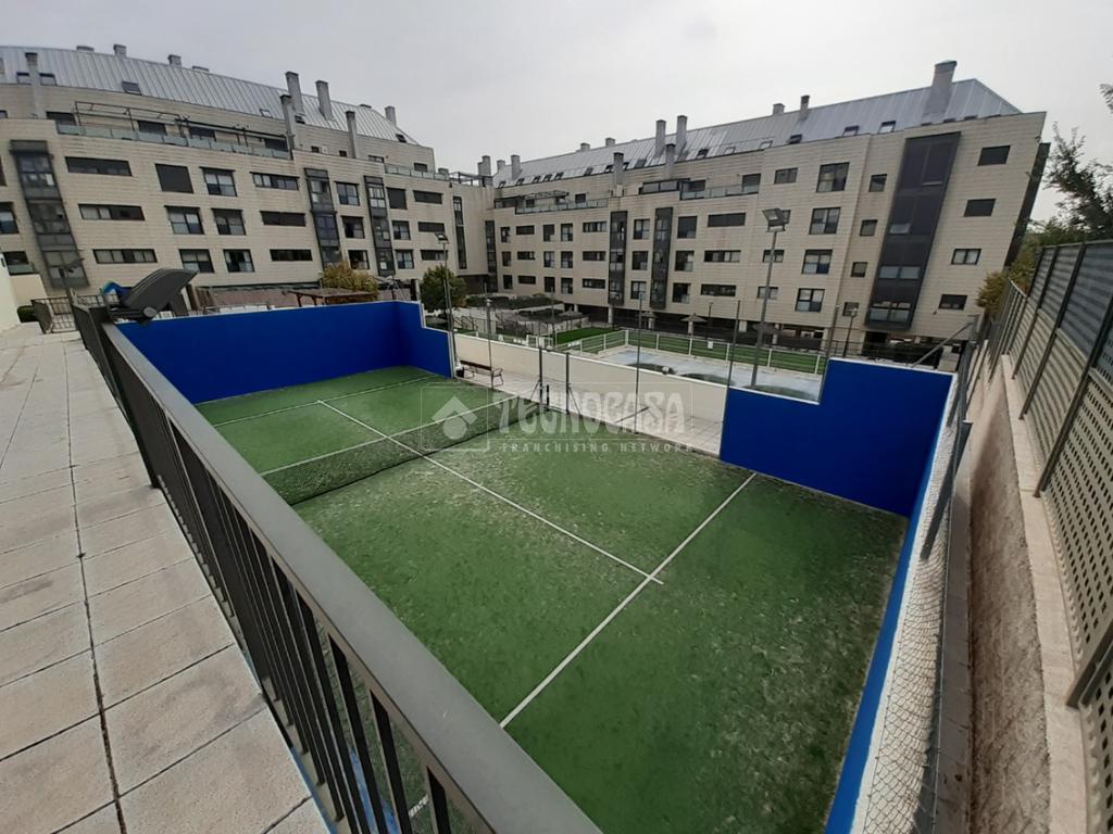 Urbanización con zonas ajardinadas, pádel, gimnasio, sauna, sala de reuniones para celebración de eventos, amplios soportales, piscina y conserje. Las plazas de garaje y el trastero tienen acceso directo desde la vivienda.